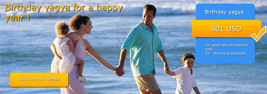 Birthday yagya is for protection, prosperity, happiness and health for the year to come, and is good also for removing obstacles. We highly recommend this yagya to everybody. Please be sure to order this yagya for yourself or for the members of your family. |